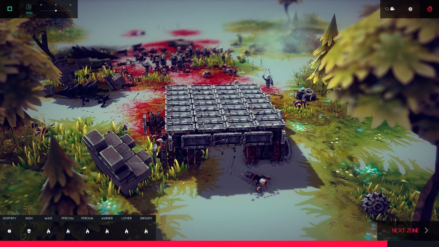 No hay límite en el número de piezas que podemos utilizar, sólo que el juego no nos permitirá pasar a la siguiente zona si no limitamos nuestra creación a cierta área por otro lado bastante generosa. De esta forma, prácticamente el único límite está en nuestra imaginación, dado que podemos llegar a crear auténticas obras de ingeniería que de haber existido en el pasado hubieran sido la mayor pesadilla de no pocos reyes. Podemos crear desde pequeños coches blindados armados con cuchillas y gigantescas bolas con pinchos, hasta lo que vendría a ser un mecha de combate fabricado en madera.