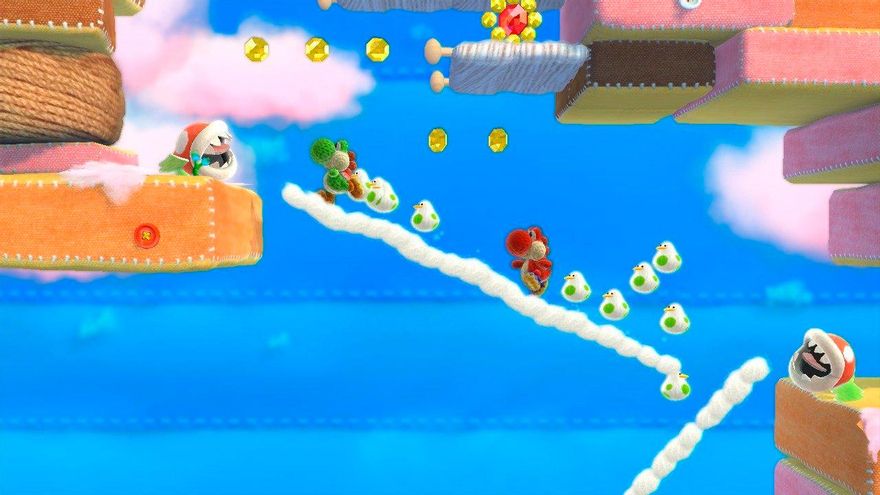 En cuanto a su estructura jugable, ciertamente no hay grandes novedades respecto a títulos anteriores. Nos encontramos ante un plataformas organizado en mundos y subniveles muy accesible, sencillo para cualquier miembro de la familia, aunque lo suficientemente completo como para que terminarlo al 100% nos lleve horas y horas de juego. Es por ello que no resultará precisamente un reto para los jugadores más avezados, quienes tendrán que emigrar a propuestas más desafiantes o bien disfrutar de este Yoshi’s Woolly World como si de un hermoso paseo se tratara.