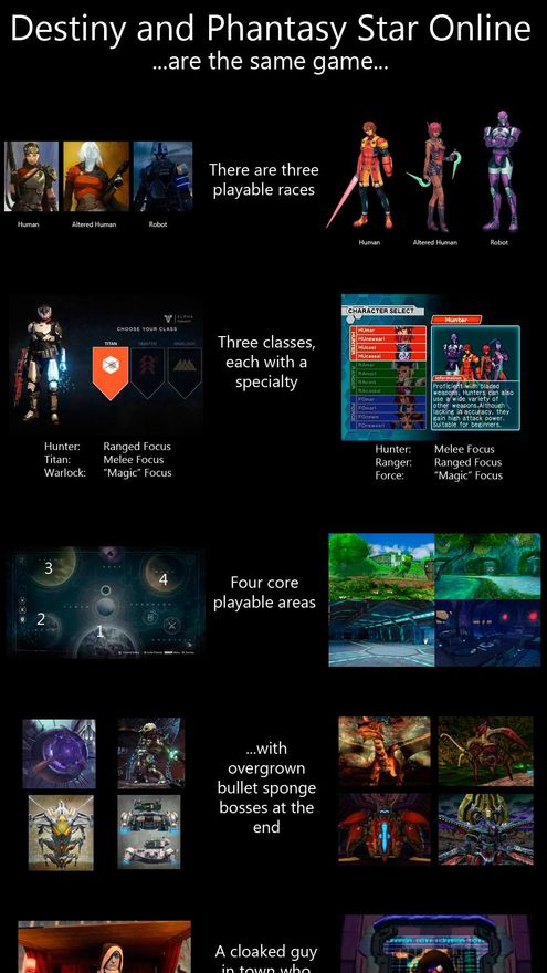 Más allá de ser comparado con otros grandes nombres del presente como Halo y Borderlands, hay usuarios que han echado la vista atrás encontrando curiosas similitudes con el gran Phantasy Star Online, título que Sega lanzó allá por el año 2000 para su Dreamcast como uno de los grandes pioneros del género MMO al sumergirnos en un universo de fantasía donde compartir nuestra experiencia con cientos de jugadores de todo el mundo.