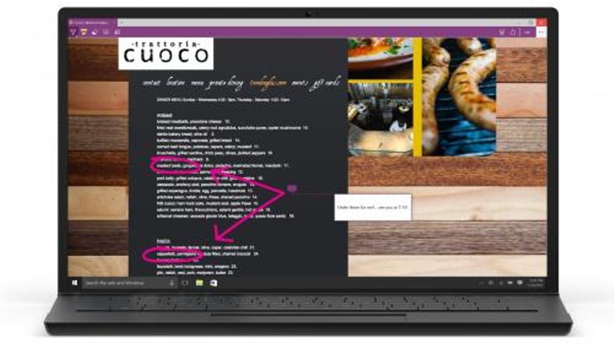 La tercera novedad es Microsoft Edge, un nuevo navegador web diseñado para funcionar a máxima velocidad. Sí, aunque parezca mentira por fin nos desharemos del pernicioso Internet Explorer. Edge incorpora características para hacer la navegación mucho más fácil. Por ejemplo, podremos tomar notas dentro de cada web, ya sea de forma táctil o con teclado. Además, incluye una opción que elimina las distracciones (publicidad, bordes molestos, etc.) para que podamos ver las páginas de forma más cómoda. Además, Cortana también estará ahí para ayudarnos, y mientras estamos centrados investigando una página ella puede conseguirnos enlaces relacionados de acuerdo a nuestras preferencias.
