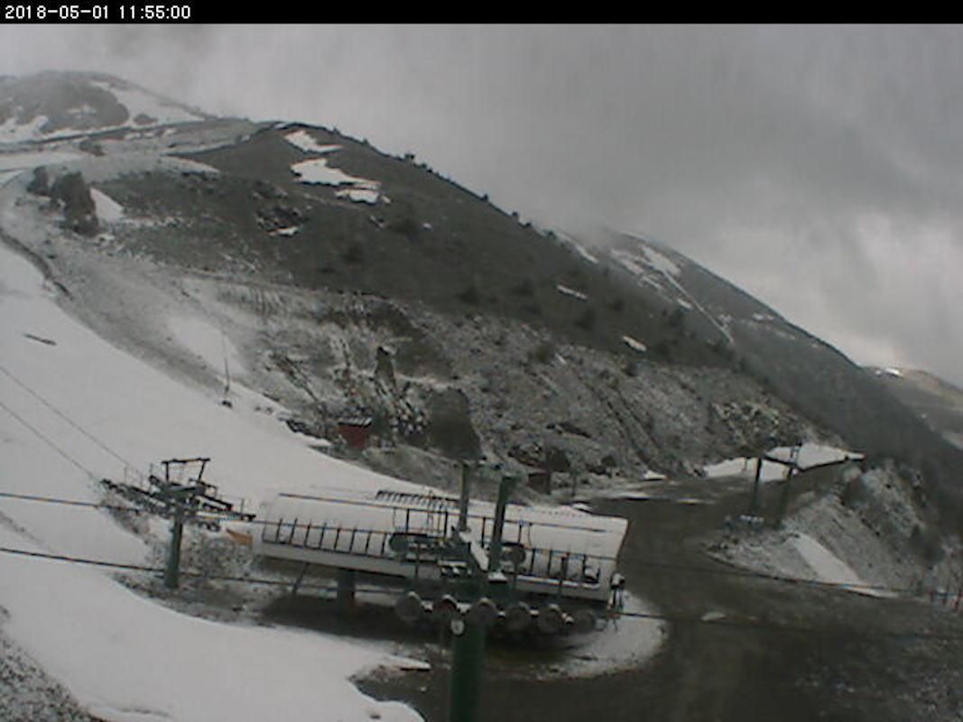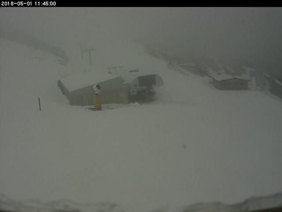 Valdezcaray ya está cerrado, estamos en plena primavera, pero la nieve ha vuelto. Este aspecto presenta la estación hoy, 1 de mayo, según muestran la webcam de la propia estación.