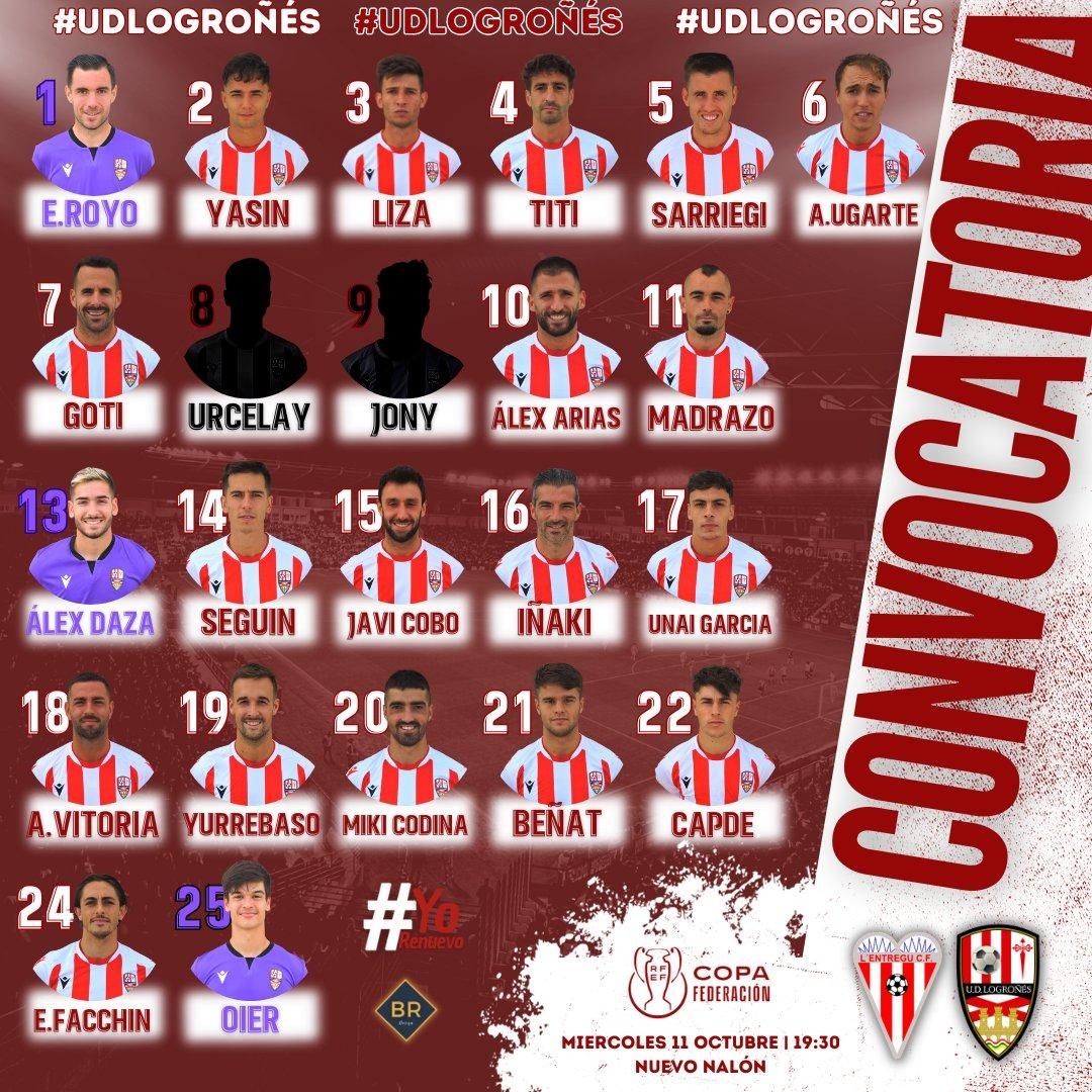 La UD Logroñés ha viajado este martes a Asturias para hacer noche, y lo ha hecho con 22 jugadores en la lista de convocados. Jony (molestias físicas) y Urcelay (sancionado) son las bajas blanquirrojas para el encuentro de este miércoles.