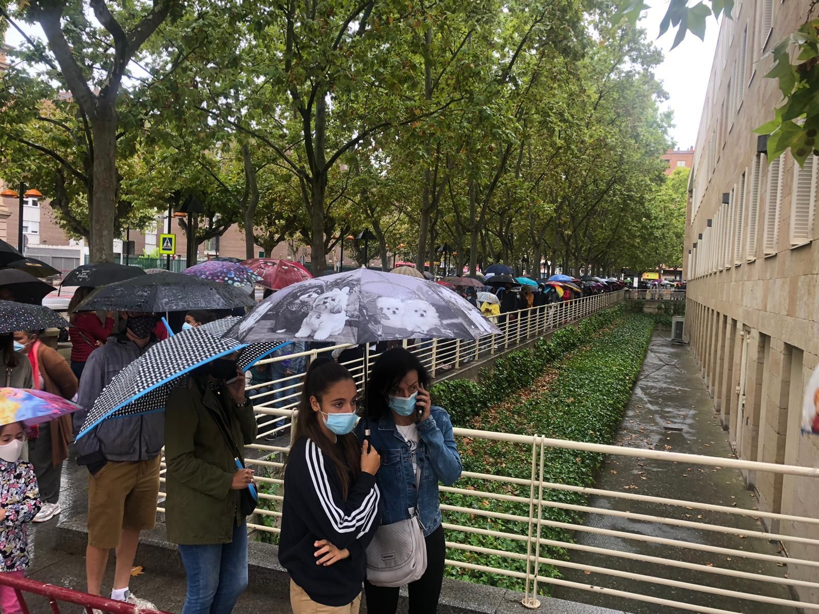 Sin embargo, la situación no ha quitado las ganas a los logroñeses y logroñesas que desde las 14.15 horas han estado haciendo fila a pesar de la lluvia para conseguir una de estas invitaciones que se entregan en el Auditorio Municipal.