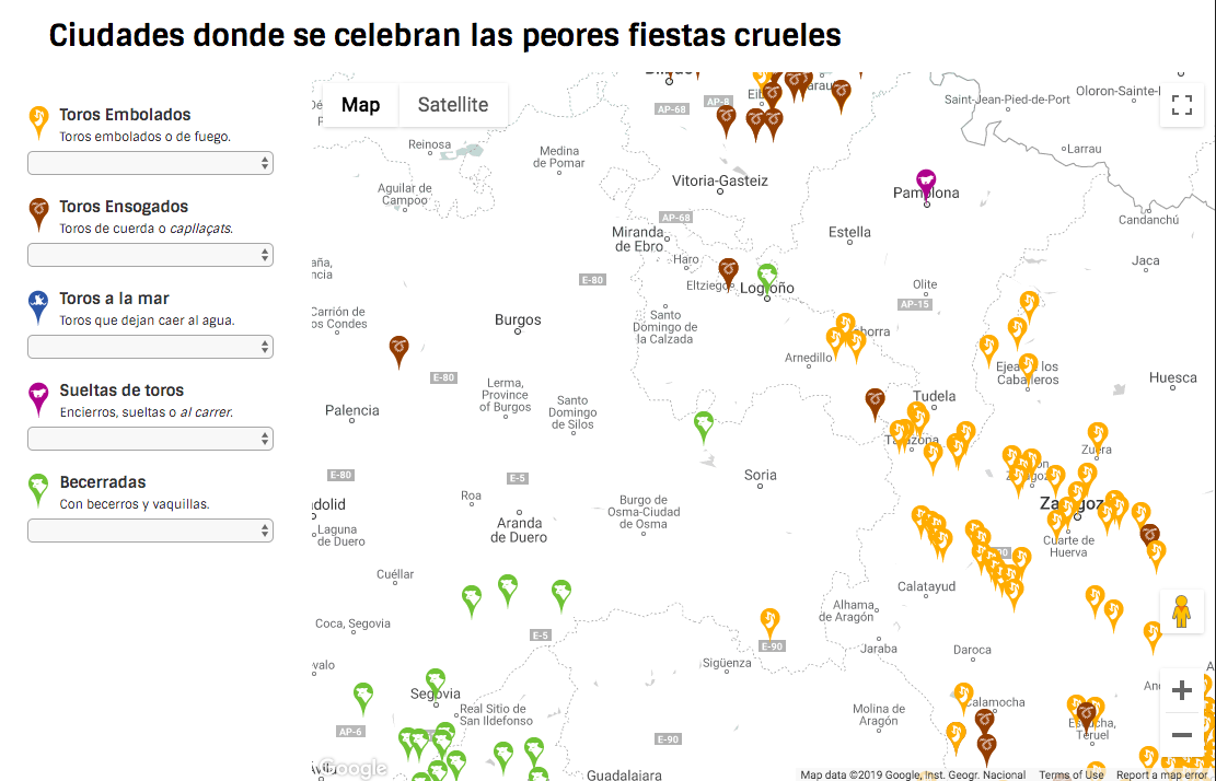 En la web, además de la petición de firmas, se encuentra información detallada de cada una de las modalidades, así como un mapa interactivo que se irá actualizando a medida que se avance en la investigación. En este mapa se incluyen los municipios de Cabretón (toro ensogado), Arnedo, Calahorra y Anguciana (toro embolado) y Logroño (vaquillas).