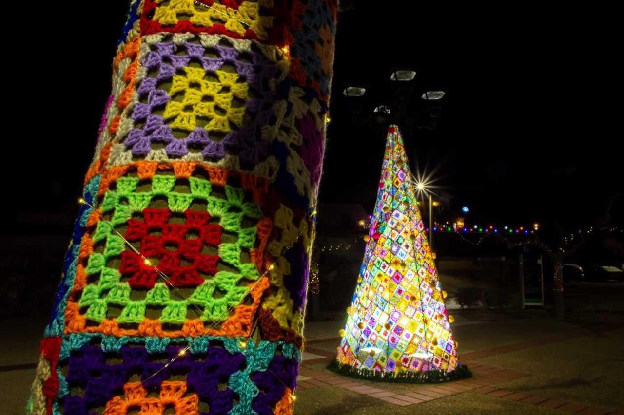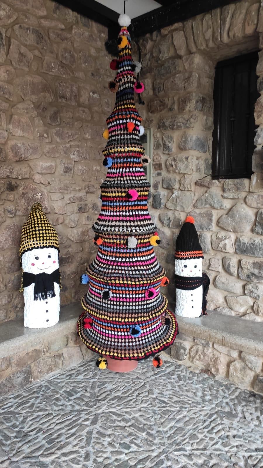 Otro árbol de Navidad con 1.100 cuadros de ganchillo, en el que se han trabajado 41 personas tejiendo, durante 20 días, 148 ovillos de lana y que adorna la plaza de Ocón, ha sido la decoración ganadora en la categoría de Mayores de edad colectivo.