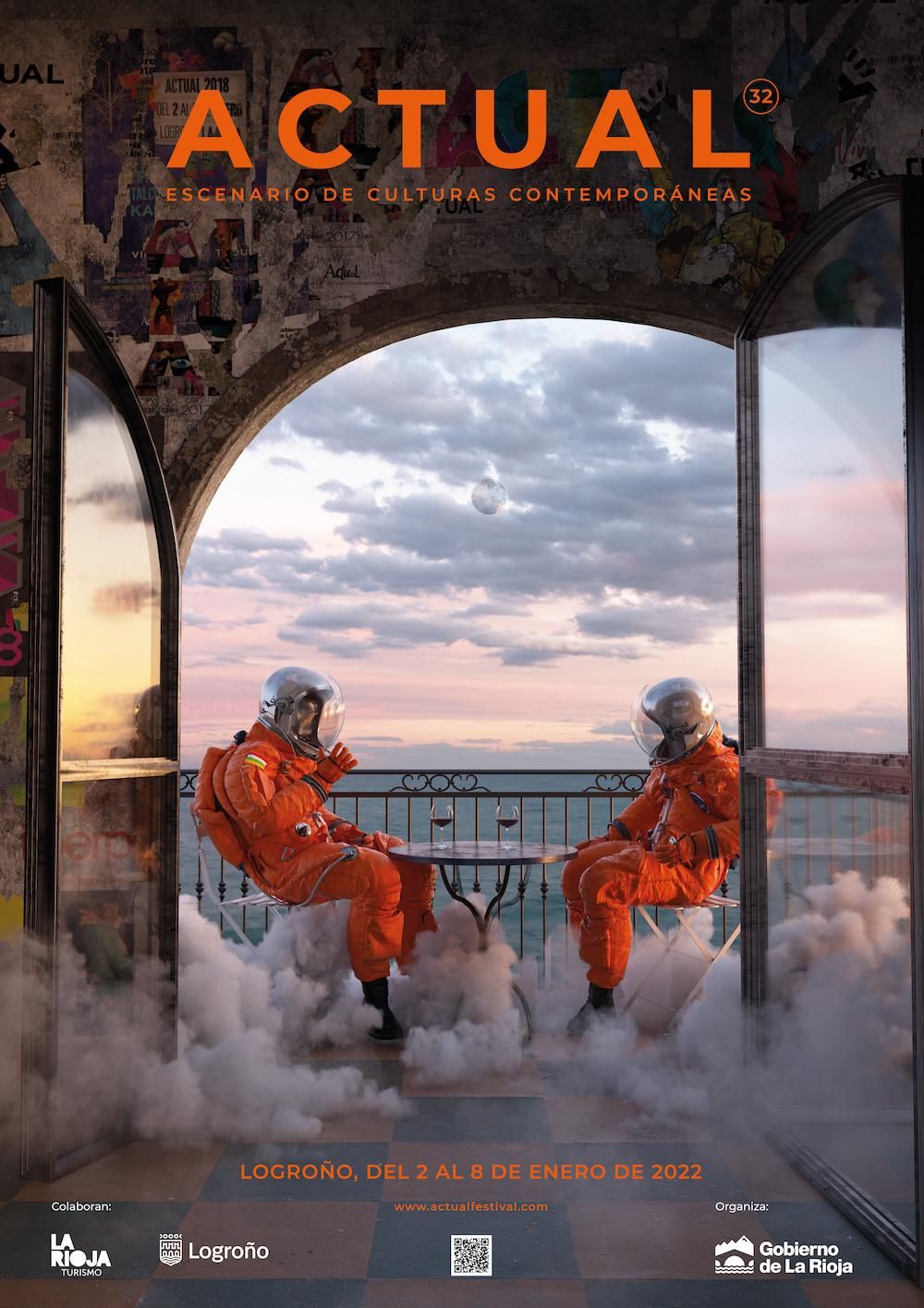 Concha Andreu también ha desvelado el nuevo cartel, con la gran noticia aquí de que el festival ha logrado localizar a Mateo y Bernabé, dos astronautas riojanos que iniciaron un viaje espacial en 1991 (año del primer Actual), y con los que desgraciadamente se perdió el contacto poco tiempo después y se habían dado por perdidos. La organización de Actual ha logrado ahora localizarlos: 32 años después, se encuentran sanos y salvos, tomando un crianza en un planeta cercano, y se les va a traer de vuelta a La Tierra, aunque indudablemente necesitarán un periodo de adaptación, pues regresan a un Logroño muy diferente del que conocieron… El cartel de este nuevo Actual recoge esa imagen y ha sido creado por el diseñador y artista 3D Javier Soler Espluges.