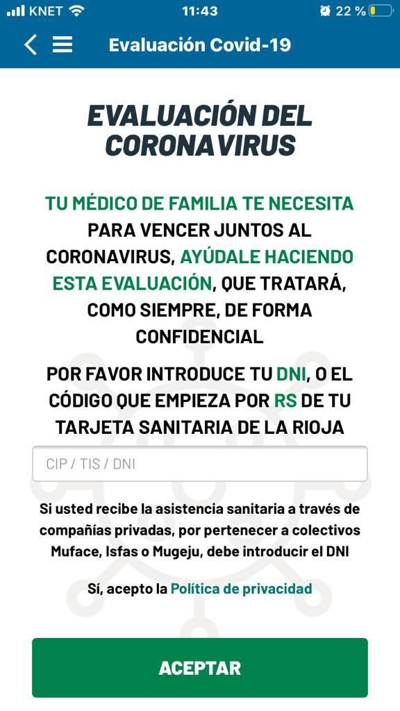 En general, la aplicación consiste en una autoevalucación sobre los antecedentes y síntomas que permitirá a las unidades Covid ponerse en contacto con los sospechosos. Para realizar esta evaluación se puede acceder a través del envío de SMS masivos o directamente a través de la aplicación de RiojaSalud o de la web de coronavirus del Gobierno de La Rioja.