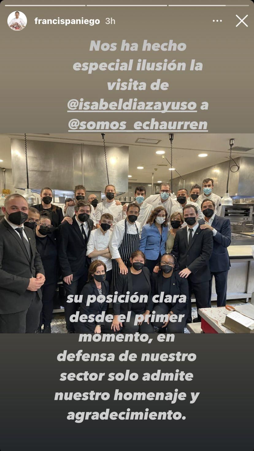 “Su posición clara desde el primer momento en defensa de nuestro sector solo admite nuestro homenaje y agradecimiento”, ha dicho el cocinero al compartir la imagen.