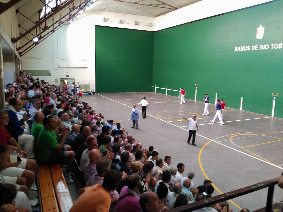 O lo que sucede en Baños de Río Tobía, donde las fiestas más importantes coinciden con las de Logroño, entorno a San Mateo, el 21 de septiembre. Por eso, cada año, aparte del torneo de bollos que se desarrolla durante el verano, organizan antes de San Mateo un festival de pelota de primera categoría. No podía ser de otra manera, ya que la localidad ribereña al Najerilla mantiene una enorme afición a la pelota a mano, contando además con una excelente cantera de jóvenes pelotaris, como sus últimos títulos regionales demuestran.