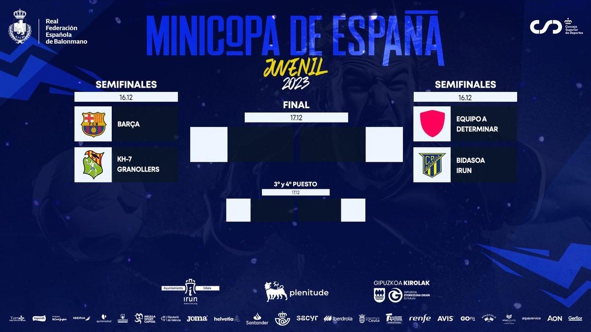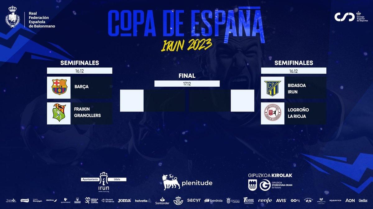 Así las cosas, las semifinales quedan así: Bidasoa-Ciudad de Logroño (sábado, 17:00) y Barça-Granollers (sábado, 19:30). Artaleku acogerá todo el certamen con estas semifinales el sábado 16 y, el domingo 17, la gran final, que se jugará a partir de las 21:00.