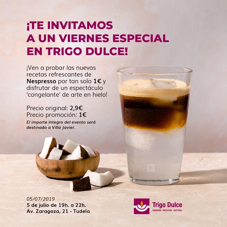 Y es esta cadena la que ha organizado este evento soldiario junto a Nespresso. De esta forma, Nespresso aprovechará la oportunidad para presentar alguna de sus nuevas recetas de verano junto a un espectáculo 'congelante' en el que un artista realizará esculturas y figuras en bloques de hielo. Así los asistentes podrán degustar por tan sólo un euro las recetas de verano. La recaudación irá destinada íntegramente al comedor social de Tudela, Villa Javier. Los interesados pueden acercarse hasta las instalaciones de Trigo Dulce este viernes 5 de julio de 19 a 22 horas en la calle Aveninda de Zaragoza número 21.