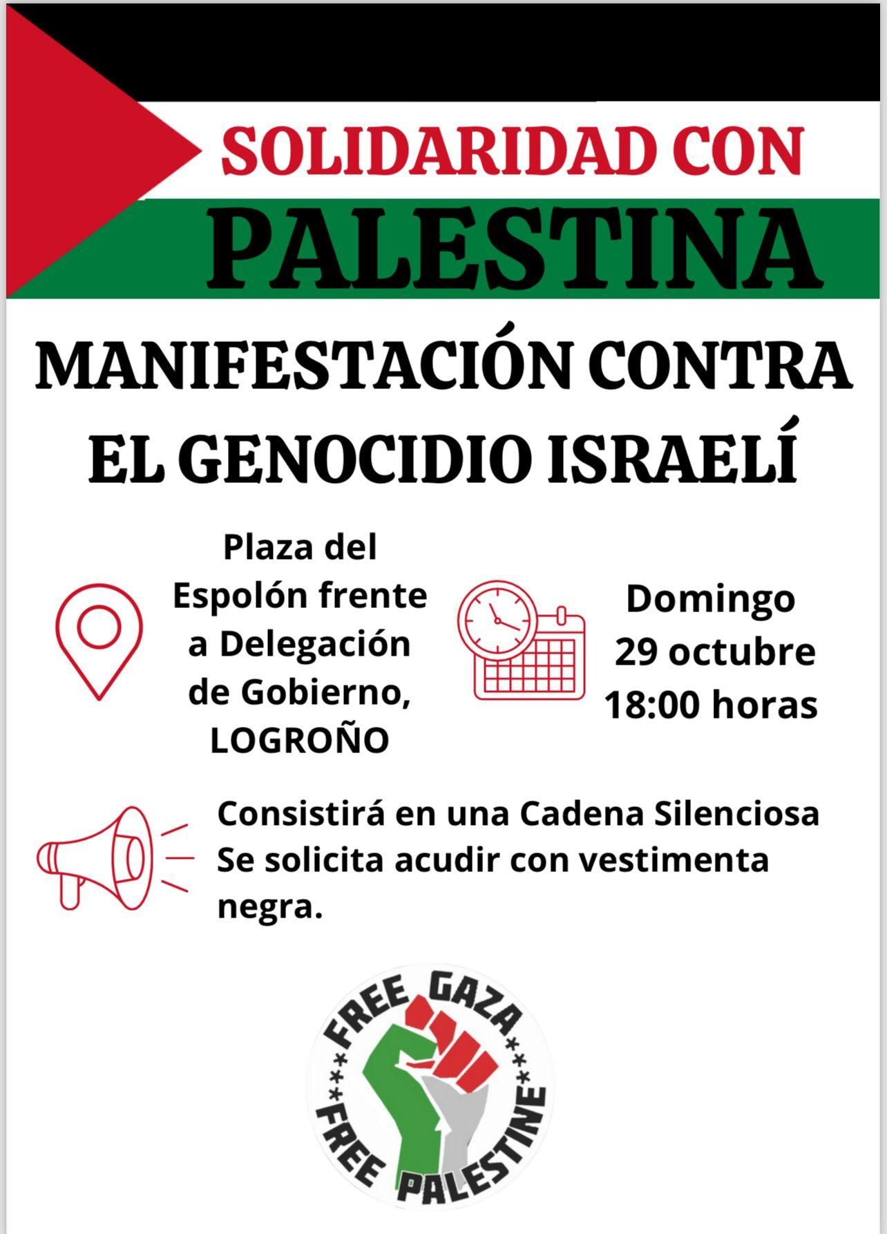 Una nueva concentración buscará este domingo manifestar el apoyo de la ciudadanía de Logroño al pueblo palestino ante los continuos ataques de Israel.