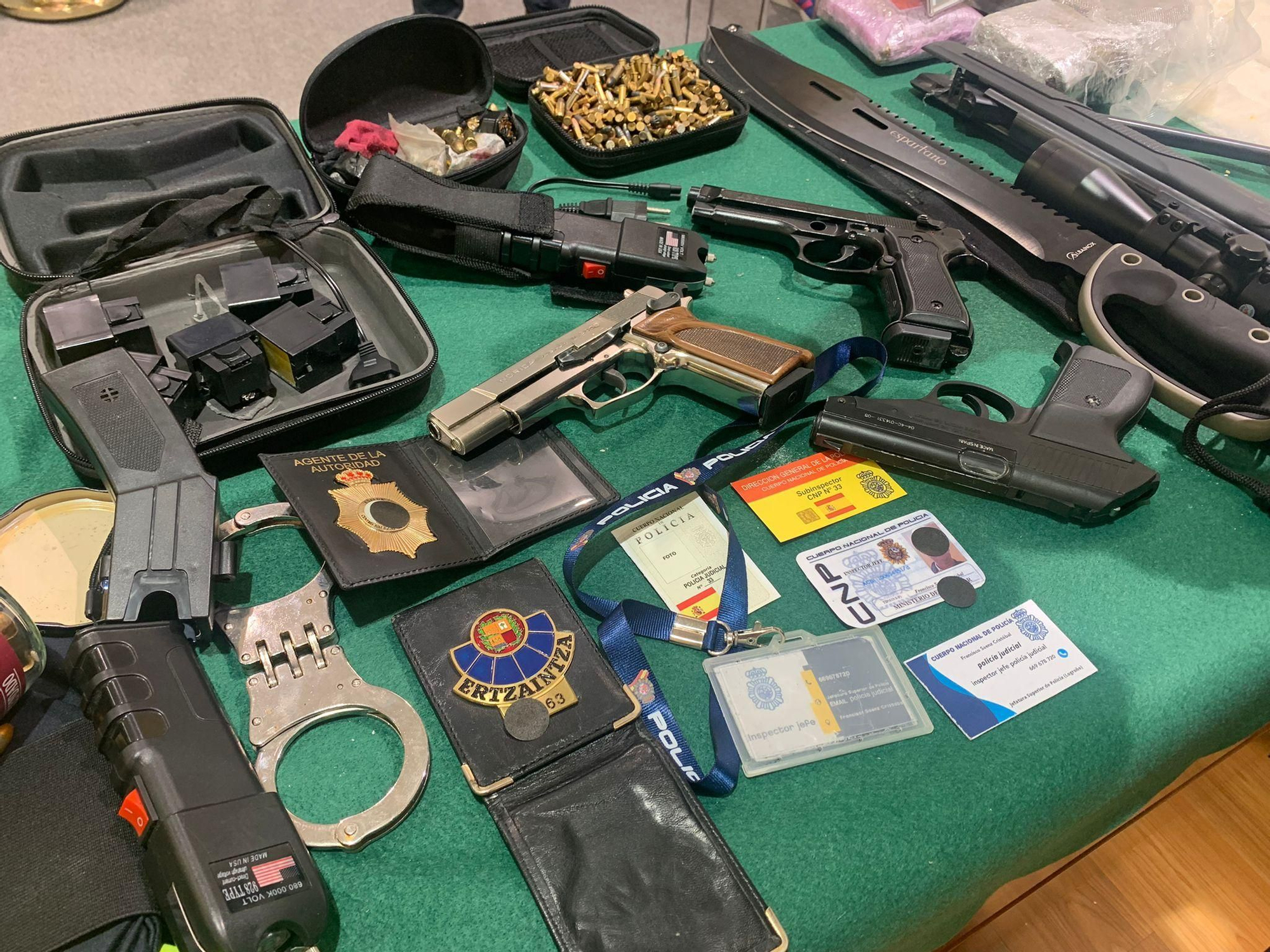 Para este cometido contaban con armas y municiones, chalecos policiales, placas identificativas de las Fuerzas y Cuerpos de Seguridad, así como tarjetas de presentación para hacerse pasar por policías.