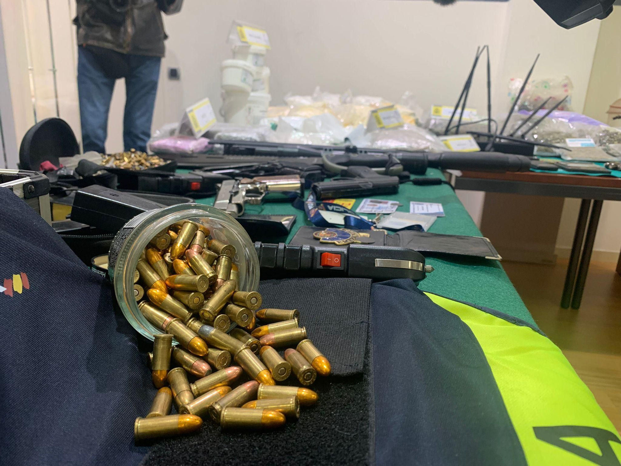 Además, disponían de armas y equipamiento policial para presuntamente dar “vuelcos de droga” a otros traficantes y cobrar deudas, teniendo a su disposición garajes, domicilios y una asociación cannábica para la ocultación de la droga.