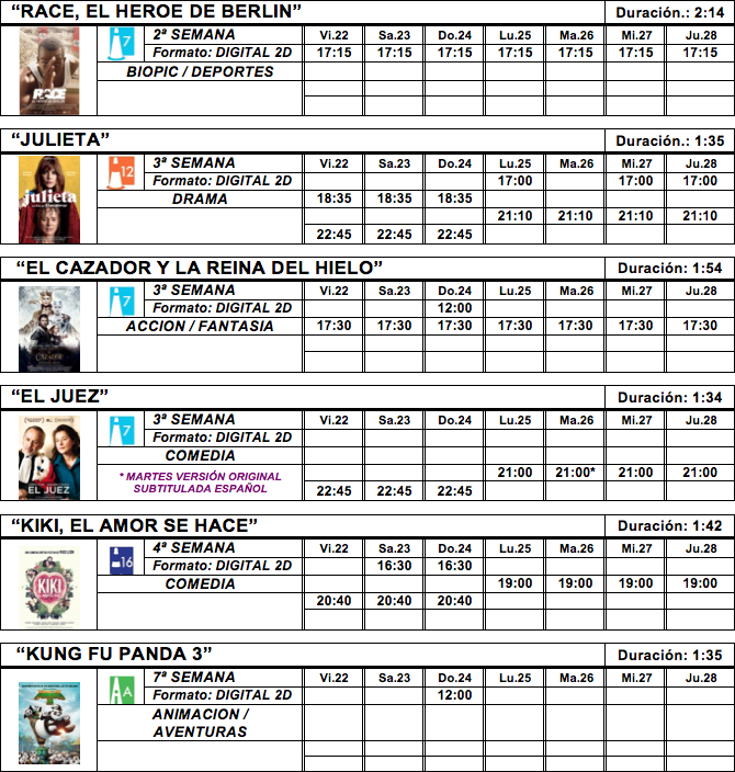 Cartelera Cines Moderno