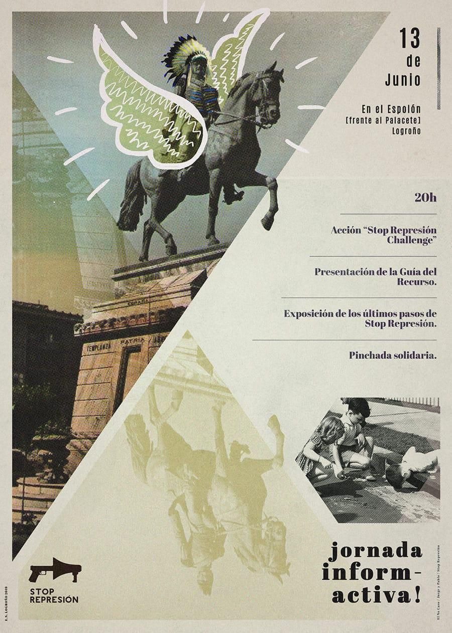 El jueves 13 de junio, de ocho a once de la noche, el Espolón de Logroño se convertirá en un centro de reivindicación. La Plataforma Stop Represión ha organizado una serie de actividades para volver a sacar su lucha a la calle e informar de los pasos que se han ido dando desde la sentencia que condenó a dos jóvenes logroñeses a penas de prisión por su participación en la manifestación del 14 de noviembre de 2012.