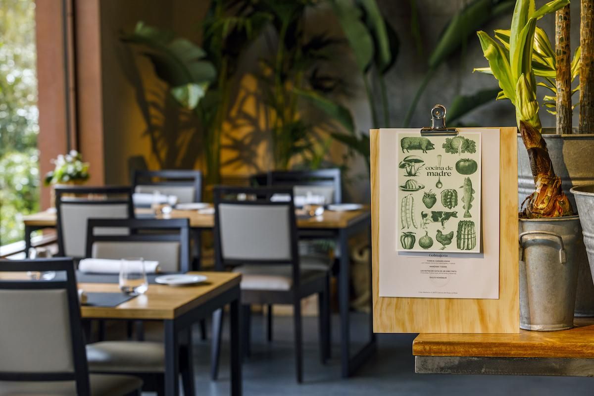 El comedor de Cocina de Madre, que alberga capacidad para 40 comensales, es un lugar totalmente natural, construido con materiales nobles, la sala es acogedora, amplia y con unos grandes ventanales que inundan el espacio de luz natural, donde lo más importante es que los comensales se sienten a disfrutar de una buena cocina de pueblo recorriendo La Rioja a través de sus platos, sus vinos y sus gentes.