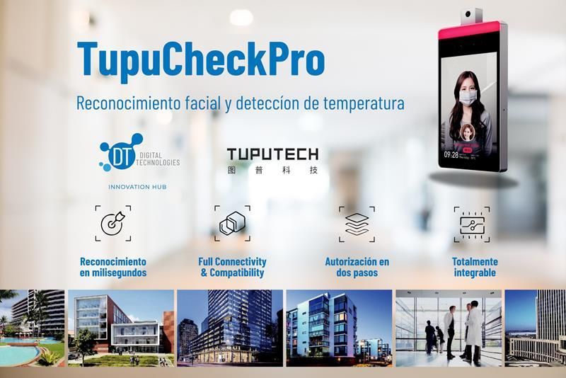 Tupucheck es una tablet que, enchufada a la red eléctrica y con una fácil instalación que puede realizar la propia empresa, ofrece en su software una cámara termográfica con un margen de error de apenas 0.2º, capaz de realizar termo escaneo en menos de 100 milisegundos y un reconocimiento facial en 300 milisegundos que asegure que el usuario porta mascarilla, siendo ambas funciones configurables según las necesidades de la empresa.