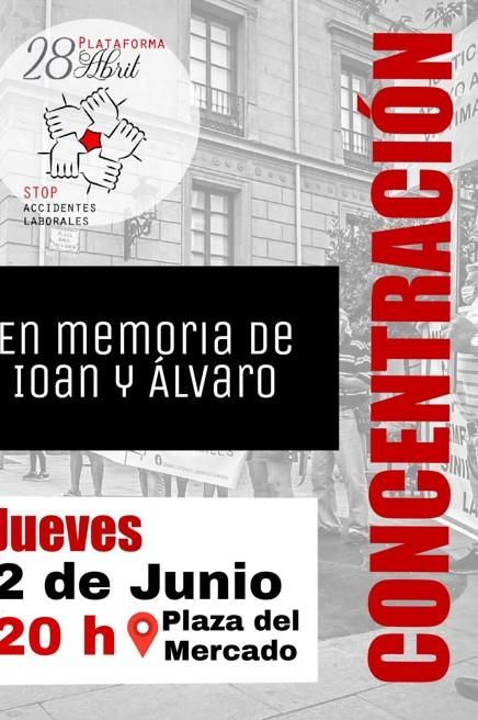 Este jueves, 2 de junio, la plataforma 28 de abril STOP ACCIDENTES LABORALES junto con la H.O.A.C convocan una concentración en memoria de Ioan y Álvaro, trabajadores de Calahorra, fallecidos en el accidente de la planta de biodiésel ocurrido el pasado jueves.