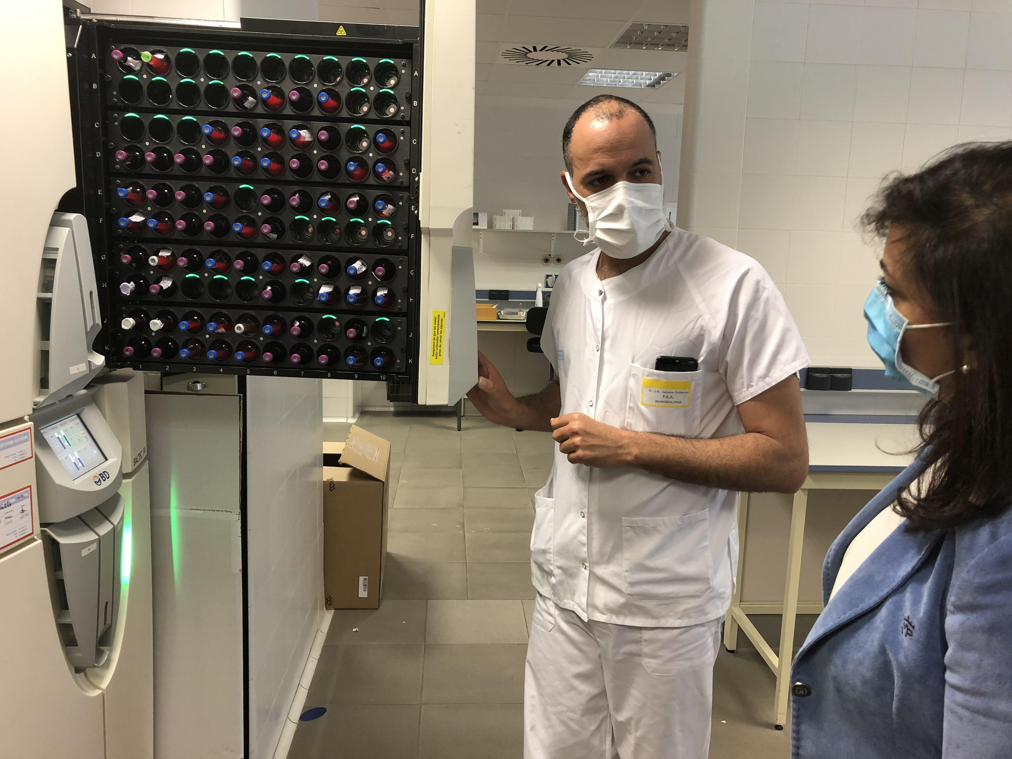 Concha Andreu y Sara Alba visitan el laboratorio de microbiología del San Pedro