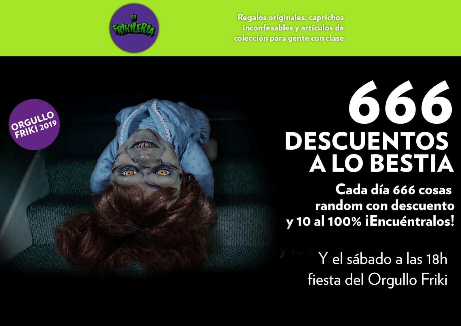 La Frikilería continúa además con su semana “666” de descuentos. Cada día habrá en su página web 666 descuentos en diferentes productos que irán cambiando. Además, cada día habrá diez productos con un descuento del 100%, es decir, totalmente gratis, para el primero que los encuentre.