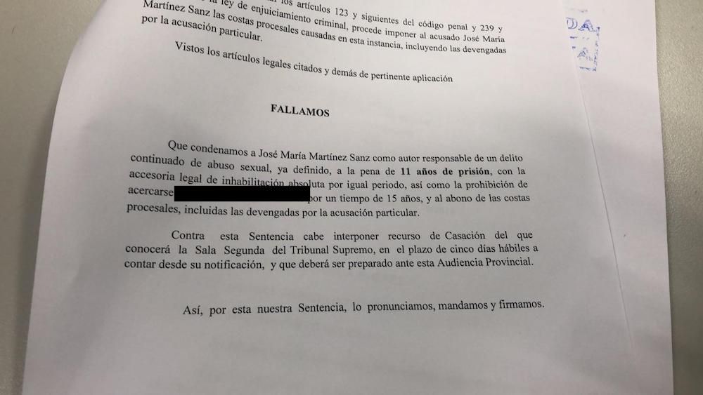 De la Hoz ha asegurado que se ha “emocionado” al conocer el fallo de la sentencia, de 70 folios, y ha destacado el hecho de que se haya admitido el argumento del abuso sexual continuado. “Ahora vamos a proceder a estudiar y analizar la sentencia, pero solo con conocer el fallo estamos muy satisfechos”, ha afirmado, para explicar que ya ha hablado con el padre “que no se lo creía y se ha emocionado”.