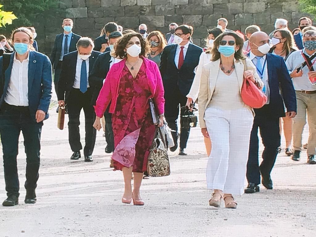 Una conferencia que también cuenta con la asistencia de la presidenta del Senado, Pilar Llop, y los miembros del Gobierno, entre los que se encuentran las cuatro vicepresidencias y los titulares de Hacienda y Sanidad, además de Política Territorial. Una vez que todos han llegado al monasterio, se ha realizado la fotografía de familia y todos juntos han pasado al claustro del monasterio, donde se ha servido un desayuno informal.
