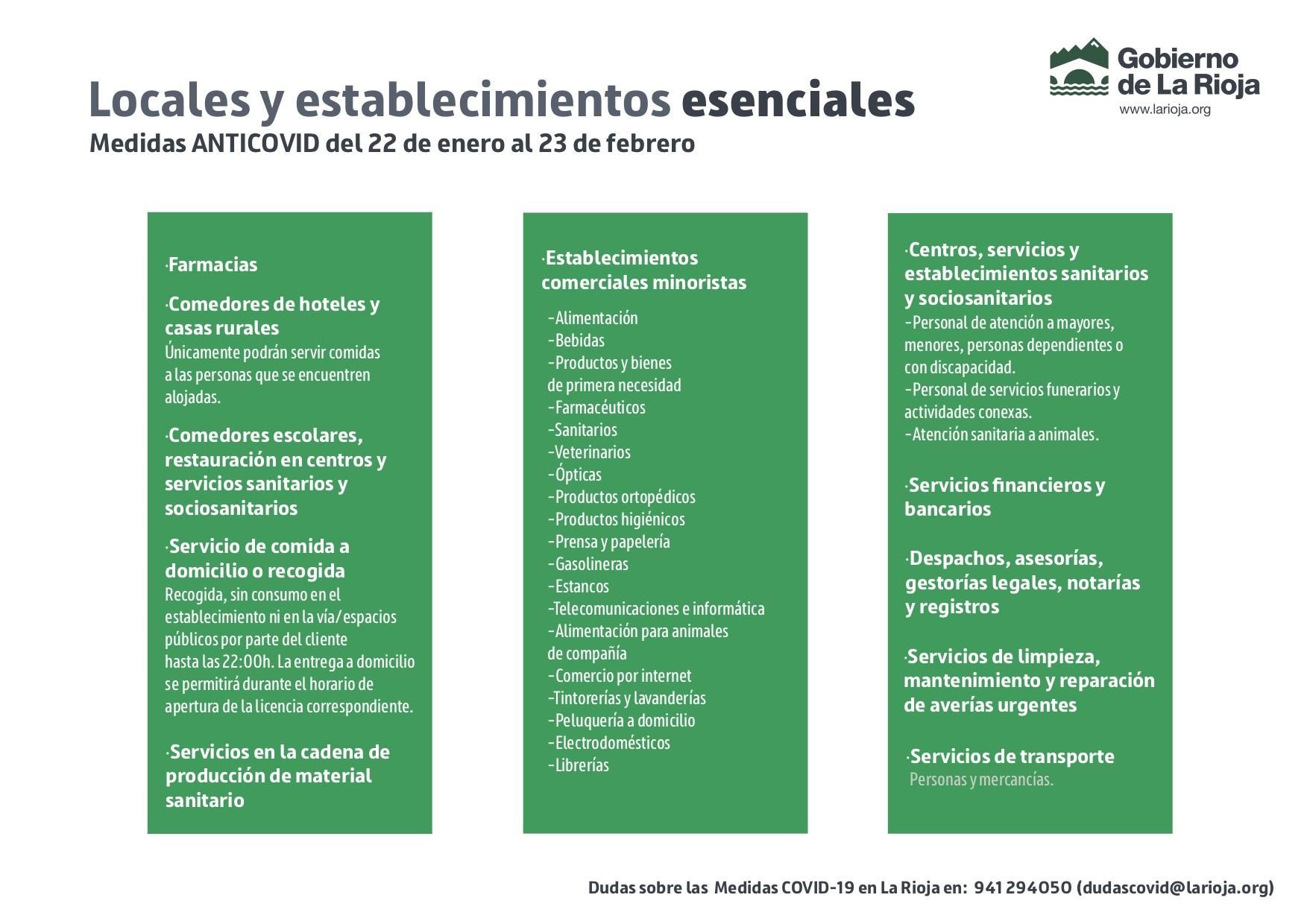 El Gobierno de La Rioja ha ofrecido un borrador en el que se detallan las actividades que pueden mantenerse tras considerarse esenciales. El resto, quedan suspendidas durante un mes.