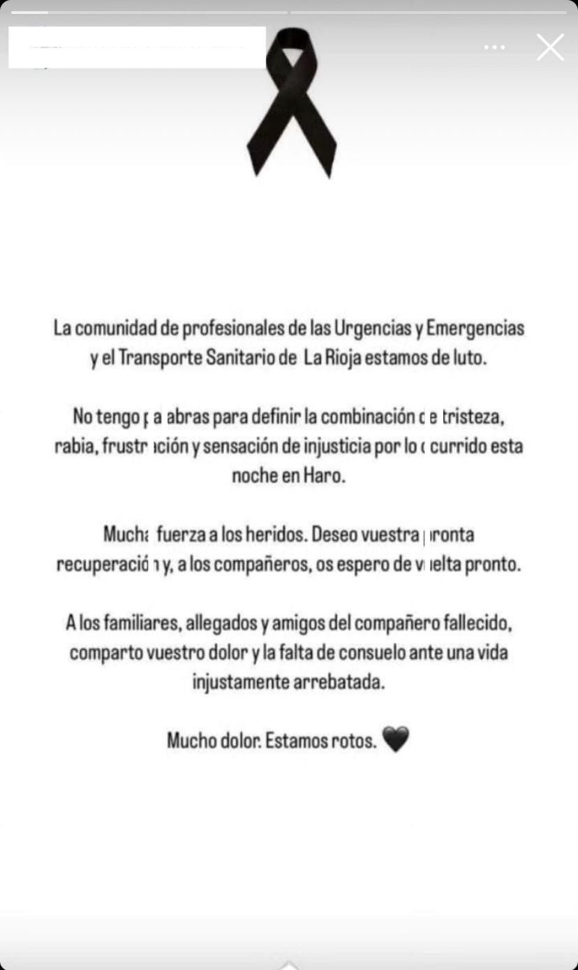 Respondían a este mensaje multitud de compañeros sanitarios, como el director de Atención Primaria y Emergencias Sanitarias del SERIS, Rafael Crespo: “muy duro y más duro para los compañeros que lo han vivido en directo y para sus familias”. La cruz de emergencias sanitarias con el crespón negro ha inundado las redes sociales.