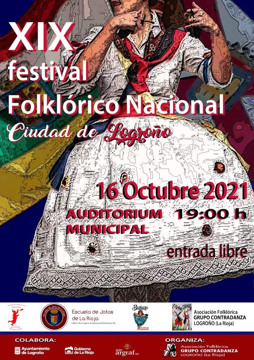 El Grupo Folklorico Contradanza celebra este sábado el XIX Festival Ciudad de Logroño. Será en el auditorio del Ayuntamiento de Logroño a las 19 horas, con entrada gratuita.