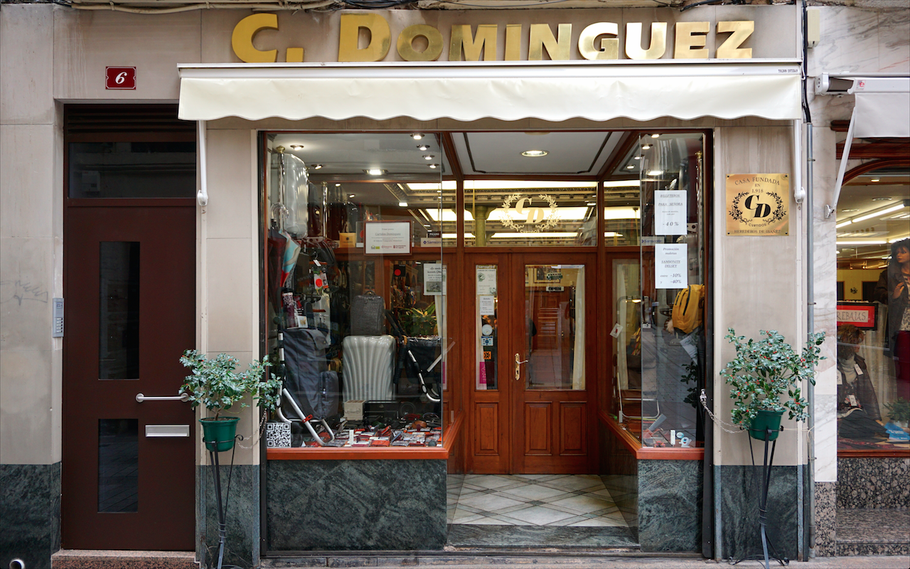 Cien años en la calle Capitán Gallarza de Logroño. Pocos comercios en la ciudad pueden soplar tantas velas y Curtidos Domínguez es uno de ellos. Y es que la placa de su fachada lo dice claro, 'Casa Fundada en 1918. Herederos de Ibañez'.