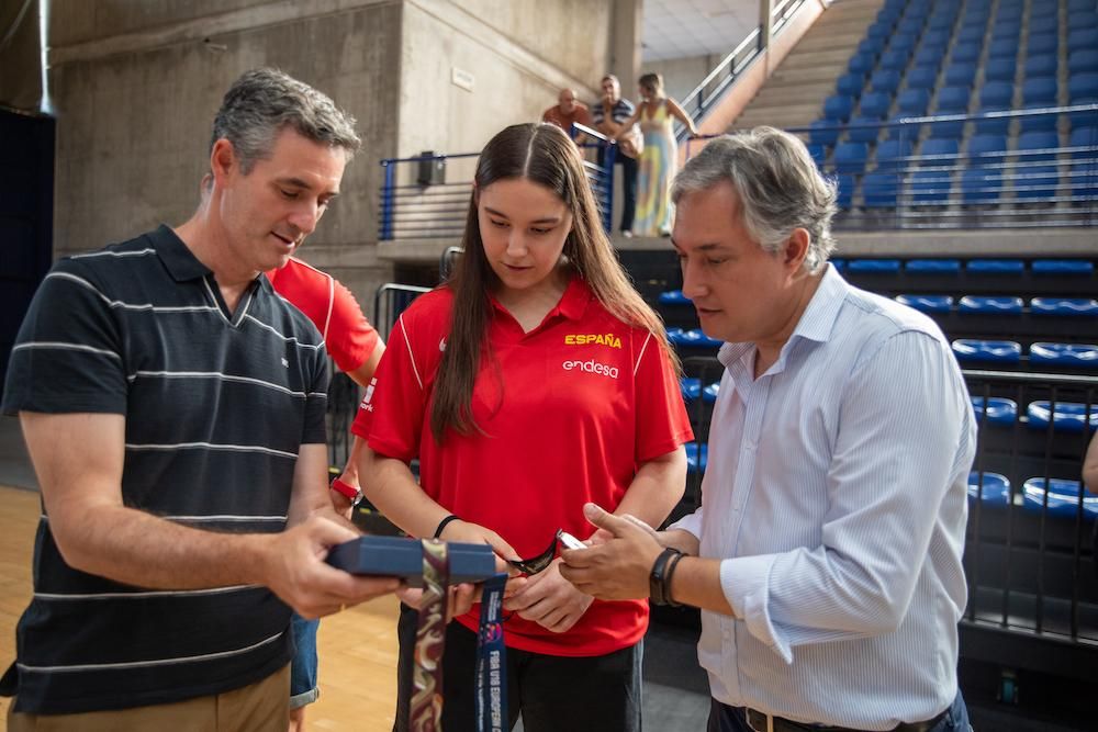 Esta mañana, Pérez Pastor, acompañado del director general de Deporte y Juventud, Diego Azcona, ha recibido a los recientes medallistas riojanos de baloncesto en el Palacio de los Deportes. Así, la jugadora riojana, Adriana Díaz, se colgó la medalla de plata en el Campeonato de Europa sub-16, que concluyó este pasado sábado en Turquía, tras la ajustada derrota de España ante Francia en la final por 63-67.