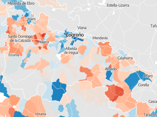 El origen de cada euro marca grandes brechas territoriales entre barrios de un mismo municipio o entre zonas rurales y ciudades. Eldiario.es ha elaborado un detallado mapa interactivo utilizando los datos del último censo que recoge el INE, el del año 2019 (en el caso de La Rioja deja fuera a unos cuantos muncipios ya que no se recogen datos de zonas de menos de 100 personas.