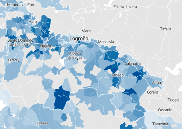 Se suman entre las zonas más ricas, Lumbreras, con una renta media por hogar de más de 55.000 euros al año; Arnedo, con ingresos de más de 54.000 euros anuales por hogar o Villalba de Rioja (47.395€), Alfaro (45.806€) o Fonzaleche (52.970€).
