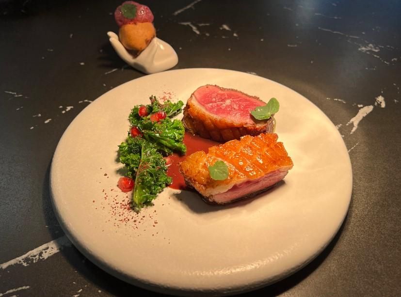 El chef Rodrigo Fernández ha señalado que el pato y la granada “son dos productos que nos encantan y defendemos muy bien. Hemos cogido todas las partes del pato (foie, carcasa, muslos y magret) y les hemos dado diversas elaboraciones mezclando la granada mollar de Elche por todos los lados”.