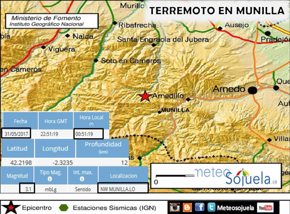 Ha sido el Instituto Geográfico Nacional quien ha confirmado que exactamente a las 0 horas, 51 minutos y 18 segundos de est madrugada, se ha producido un movimiento sísmico superficial y de magnitud 3,2, con epicentro en Munilla. En un principio no se tiene constancia de ninguna desgracia personal ni de daños materiales de ningún tipo.