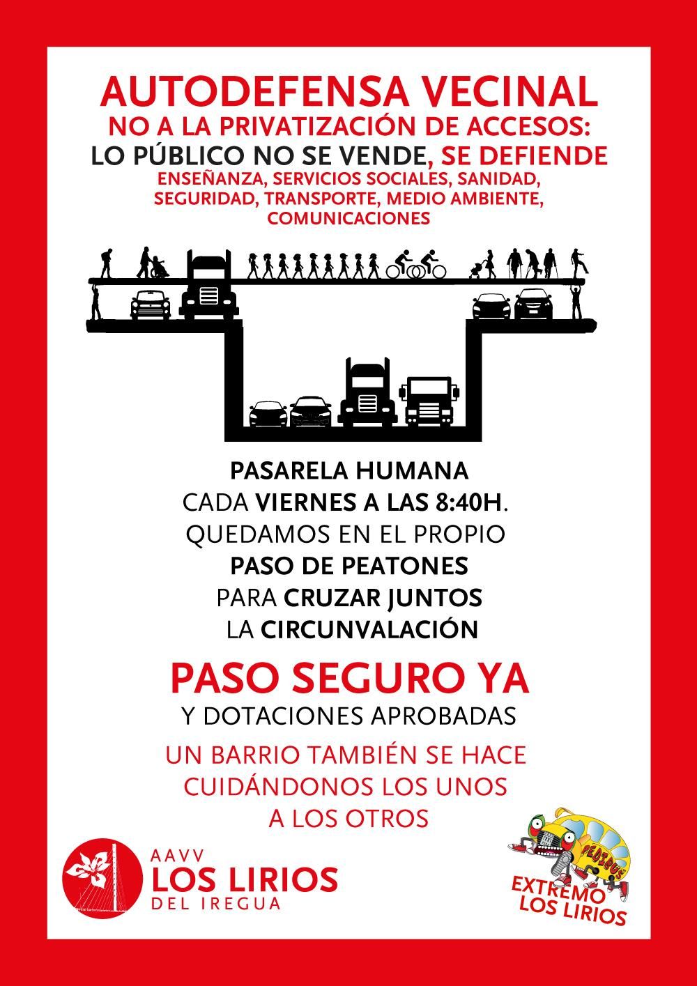 Por eso, vuelven a convocar la pasarela humana cada viernes a las 8.40 horas en el paso de peatones para cruzar juntos las circunvalación.