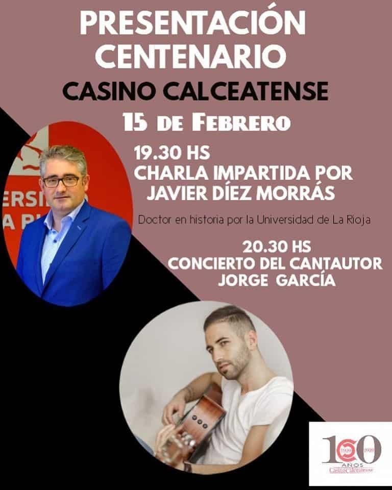 A las 19:30 horas, el doctor en Historia por la Universidad de La Rioja, Javier Díez Morrás, dará una charla sobre los orígenes del Casino como un espacio para la sociabilidad. Tras esto, a las 20:30 horas, actuará el cantante Jorge García.