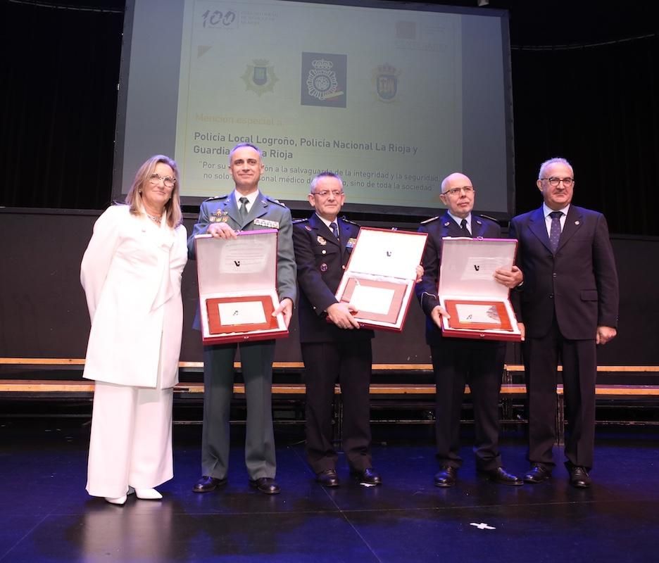 Por su especial protección a los profesionales sanitarios recibieron la Medalla de Oro del Centenario del COMLR, el Dr. Diego Murillo Carrasco, presidente de Honor de A.M.A., presidente de A.M.A. Vida y Fundación A.M.A; y la Fundación para la Protección Social de la Organización Médica Colegial de España (FPSOMC). Del primero, el galardón reconocía su figura como “uno de los hombres clave para la actividad colegial de los últimos cien años” por la puesta en marcha, entre otras iniciativas, del Seguro de Responsabilidad Civil para Profesionales Sanitarios. De la FPSOMC, presidida por el Dr. Serafín Romero Agüit, se premió el “magnífico ejercicio de solidaridad con los médicos o familiares que pasan por situaciones de viudedad, minusvalía, jubilación o defunción, entre otras”.