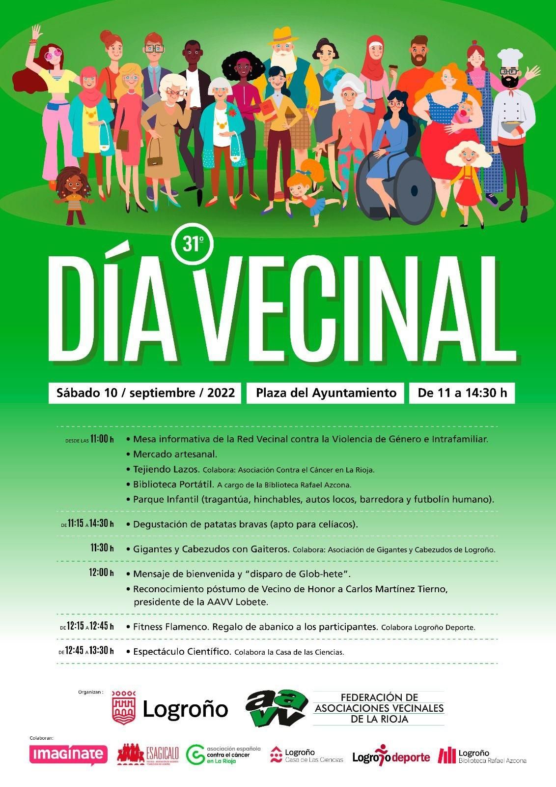 El 'Día Vecinal' celebra su 31 edición este sábado 10 de septiembre desde las 11.00 hasta las 14.30 horas en la Plaza del Ayuntamiento de Logroño.