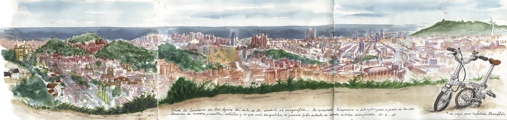 Las ilustraciones que recoge este cuaderno son el recorrido de Espinosa tras su llegada a Barcelona, para el que tardó casi dos años en ilustrar sus noventa y seis páginas. El cuaderno alberga lugares inéditos de la ciudad.