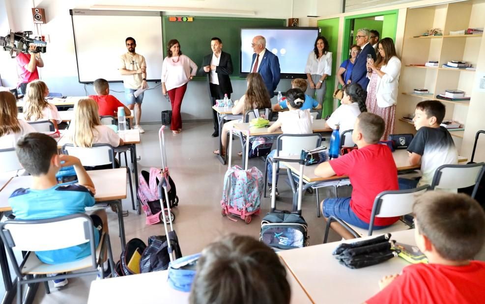 La presidenta de La Rioja, Concha Andreu, y el consejero de Educación, Cultura, Deporte y Juventud, Pedro Uruñuela, ha inaugurado este lunes oficialmente el curso escolar 2022-2023 en el CEIP Miguel Ángel Sáinz de Aldeanueva de Ebro como ejemplo de la “apuesta” del Gobierno de La Rioja por la escuela rural.