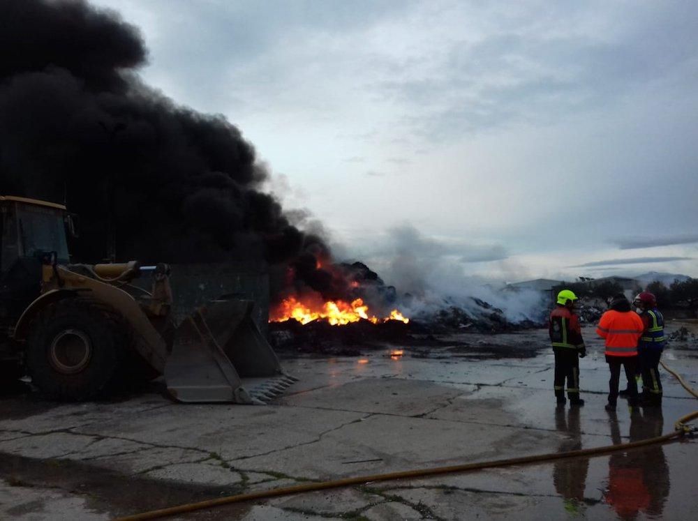 Poco antes de las tres de la madrugada se ha desatado un incendio en la antigua Planta de Reciclaje, ubicada en el paraje Cantarroyuela, en el término municipal de Pradejón.