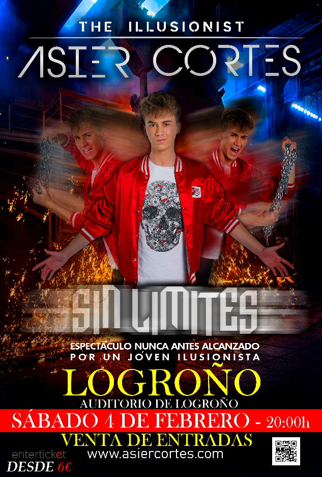 El joven ilusionista riojano Asier Cortés ofrecerá su espectáculo “Sin Límites” el 4 de febrero en el auditorio de Logroño. “Uno de los espectáculos de ilusionismo más sorprendentes hasta la fecha con los mayores efectos especiales y una iluminación de última generación”, señalan desde la organización.