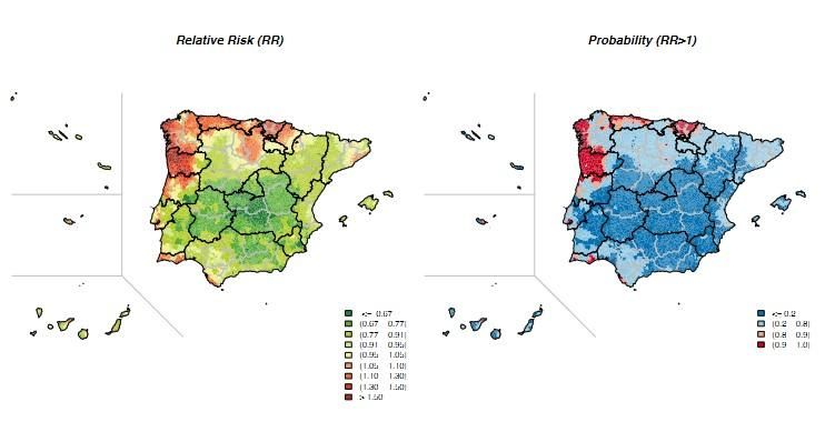 El trabajo muestra la distribución espacial de la mortalidad asociada a distintos tipos de cáncer por municipios. Esto permite apreciar algunos patrones que sugieren factores de riesgo compartidos por estas zonas concretas.