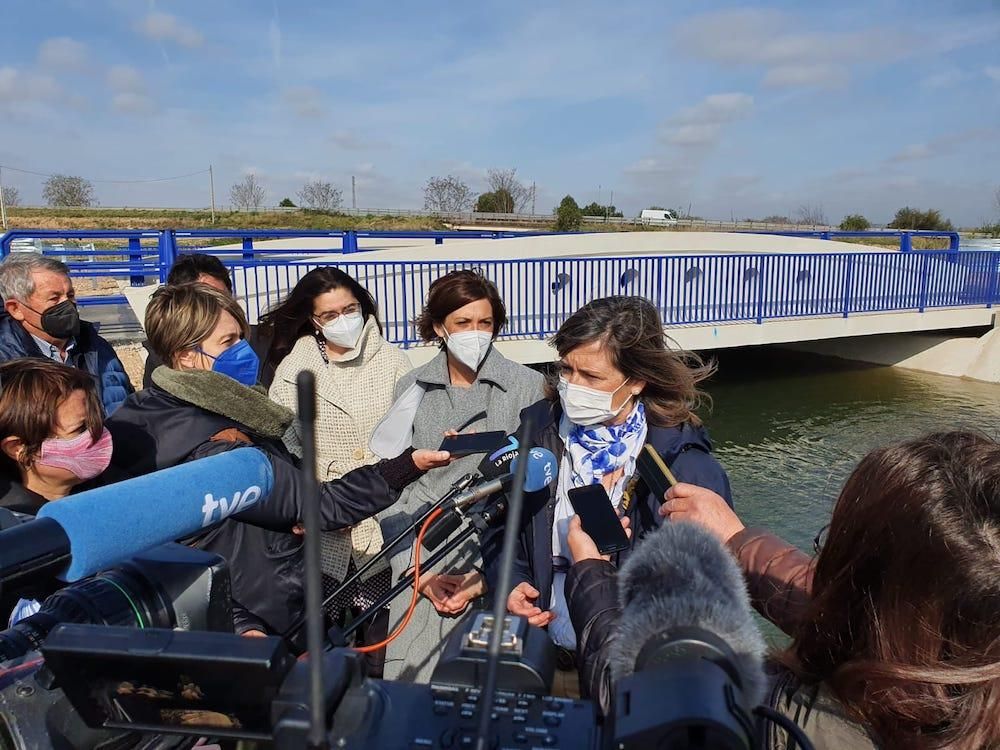 Elisa Garrido, como alcaldesa de Calahorra, ha valorado “muy positivamente la creación de este nuevo puente sobre el canal, que ha aumentado la capacidad hidráulica del canal de Lodosa a su paso por Calahorra y también ha incrementado la seguridad vial de la carretera LR 134, con una importante afluencia de tráfico, al aumentar su anchura desde los 8 hasta los 13 metros, lo que permite contar con dos carriles, arcenes de medio metro y dos aceras de 1,5 metros con barandillas que garantizan la seguridad peatonal”.
