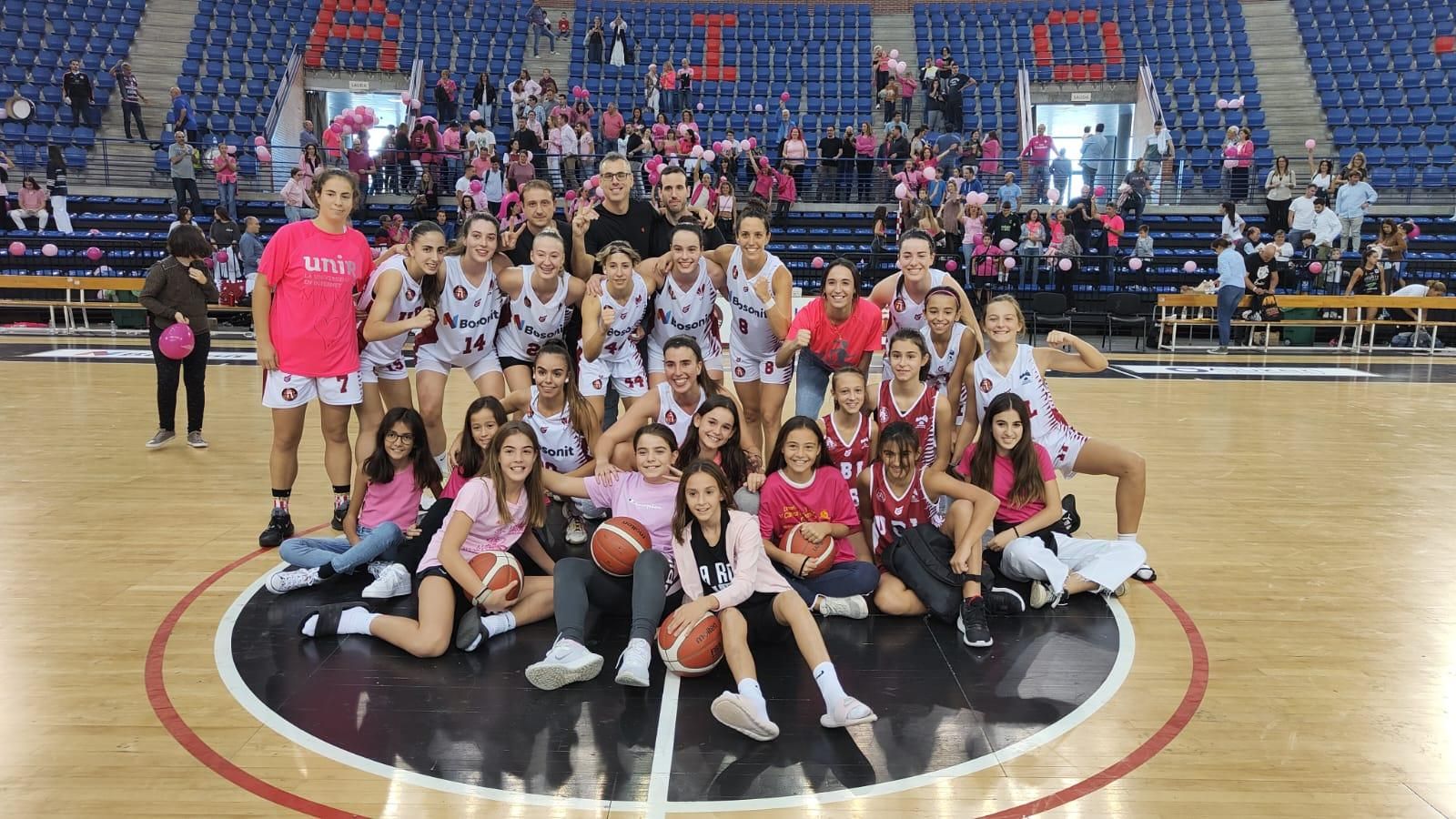 Una marea rosa, que ha portado camisetas y globos de este color, ha teñido el Palacio de los Deportes de solidaridad. Un gran ambiente y el calor del público ha llevado al Bosonit Unibasket a la victoria contra el GardenStore Sevilla (65-48).