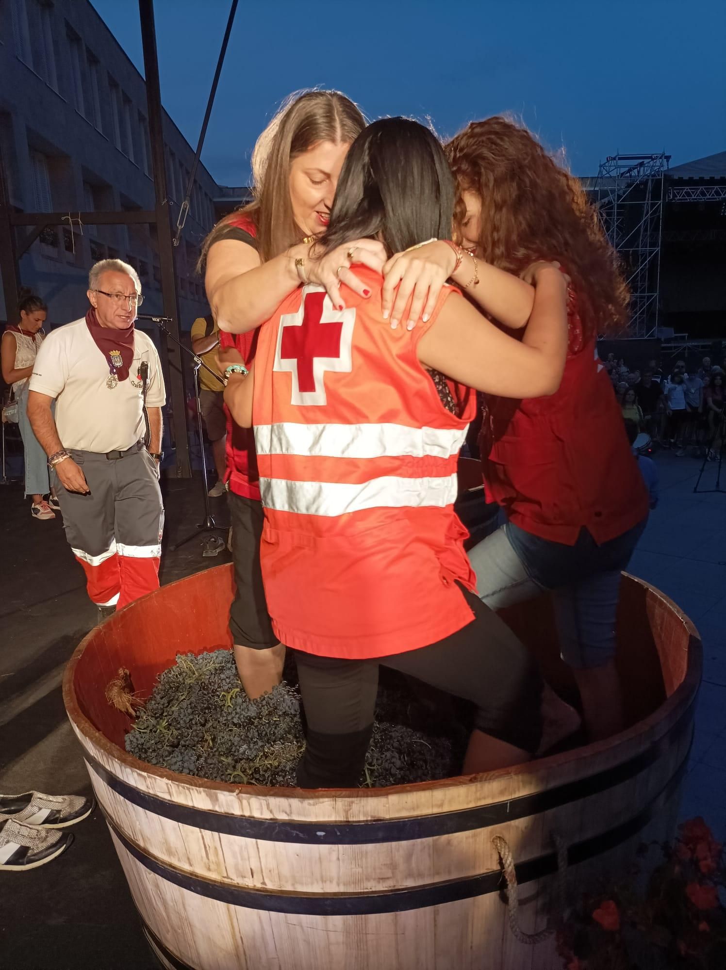 Cruz Roja, con motivo del 150 aniversario de su fundación en España, ha sido la protagonista del tradicional acto del pisado popular que se ha celebrado esta tarde en la Plaza del Ayuntamiento de Logroño dentro del programa de la 65a fiesta de San Mateo y de la Vendimia Riojana.