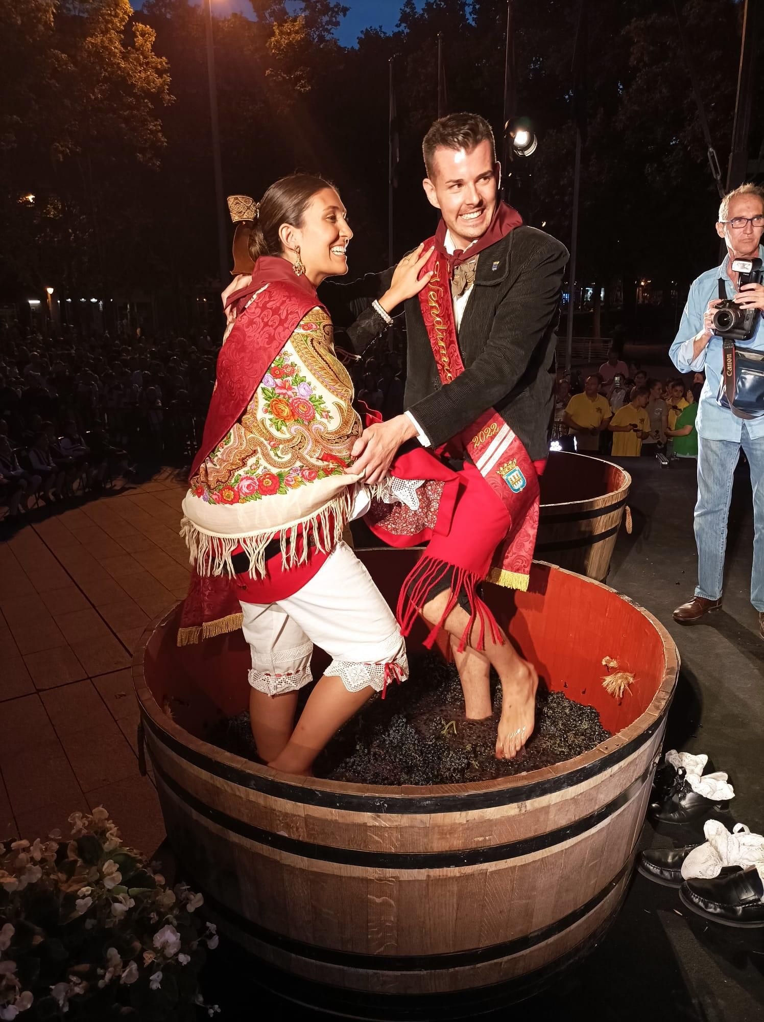 Otra de las novedades que ha presentado el pisado popular respecto a la última edición de 2019 ha sido el hecho de que ha estado abierto a la participación de todo aquel que lo desease. De este modo, han podido pisar la uva en los tinancos preparados en la plaza consistorial. El acto ha estado amenizado por las actuaciones folclóricas del Grupo de Danzas de Logroño y también ha contado con la presencia de los dos gigantes vestidos con el traje regional, que representan a Serfaín Abeitua y Nieves Sáinz de Aja.