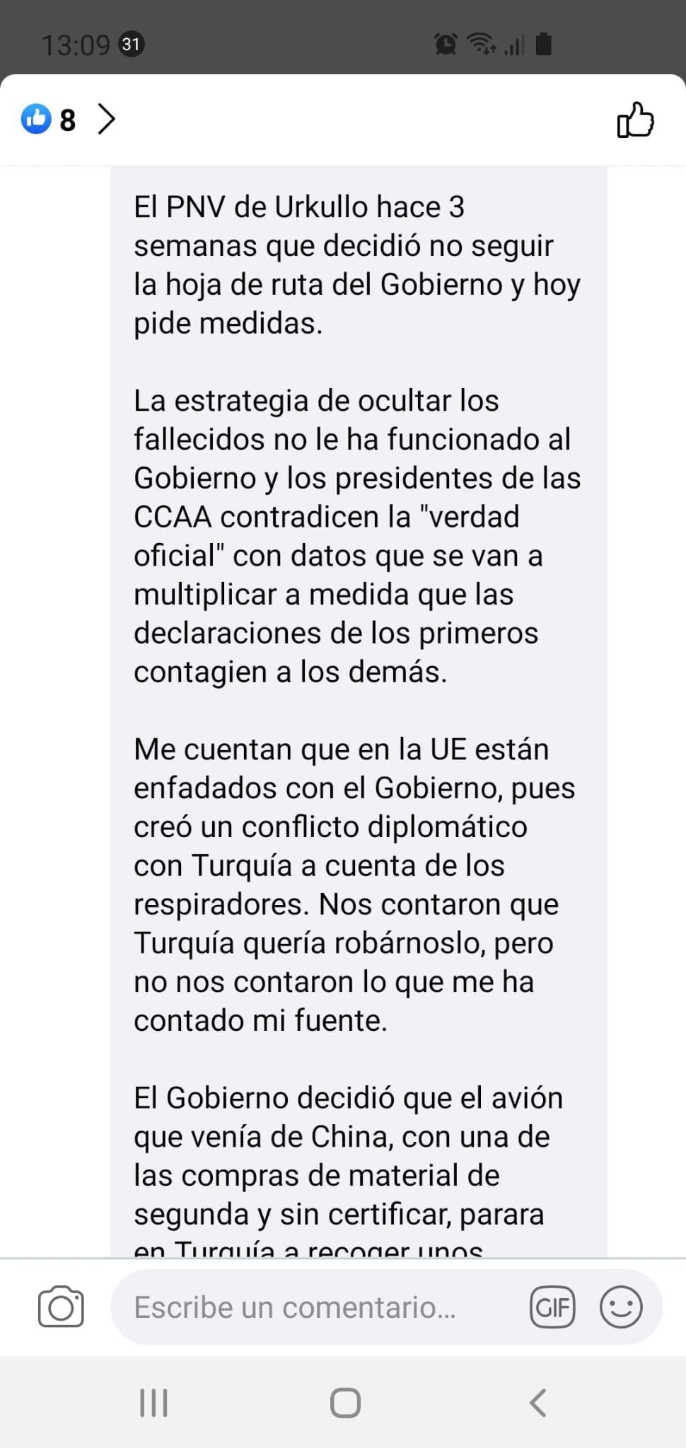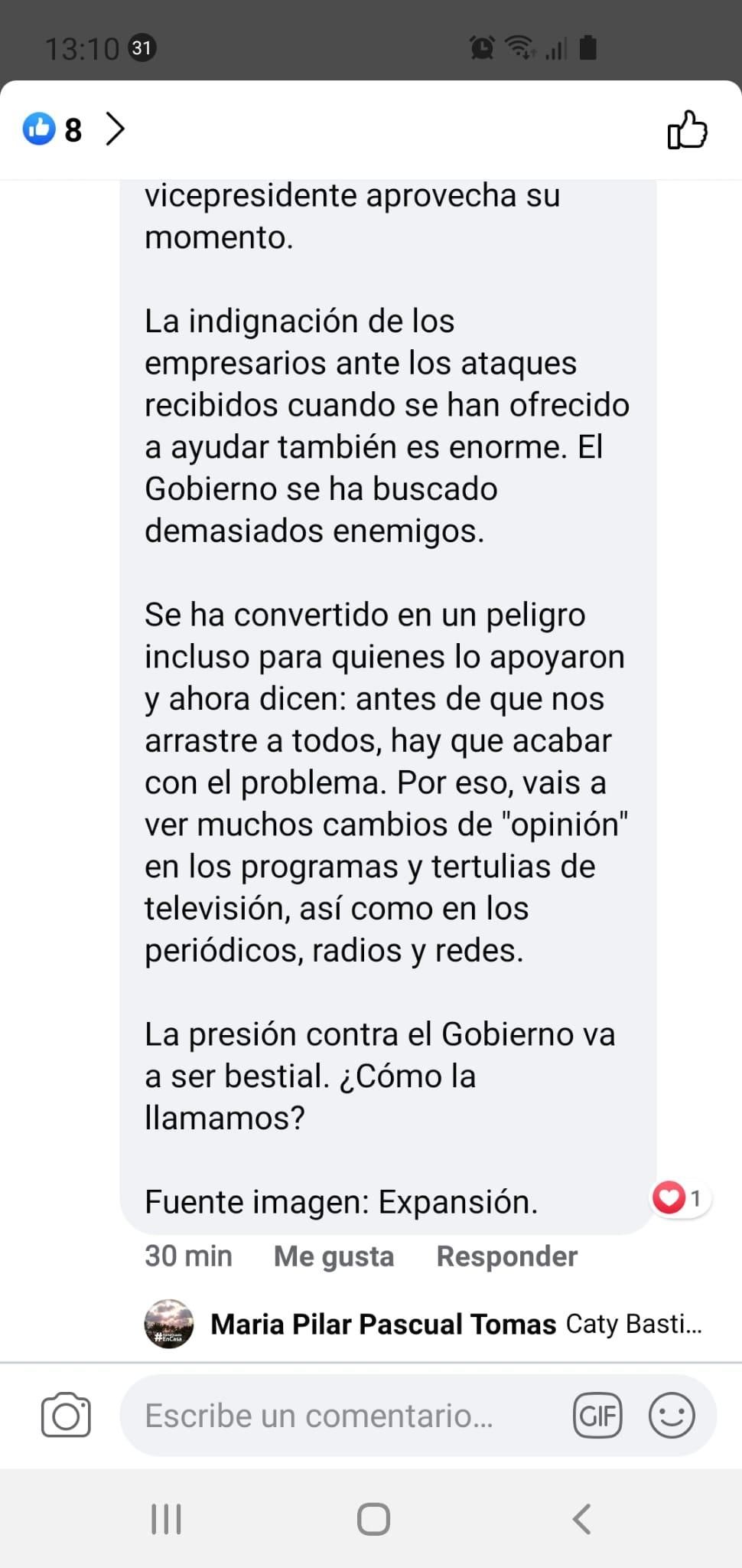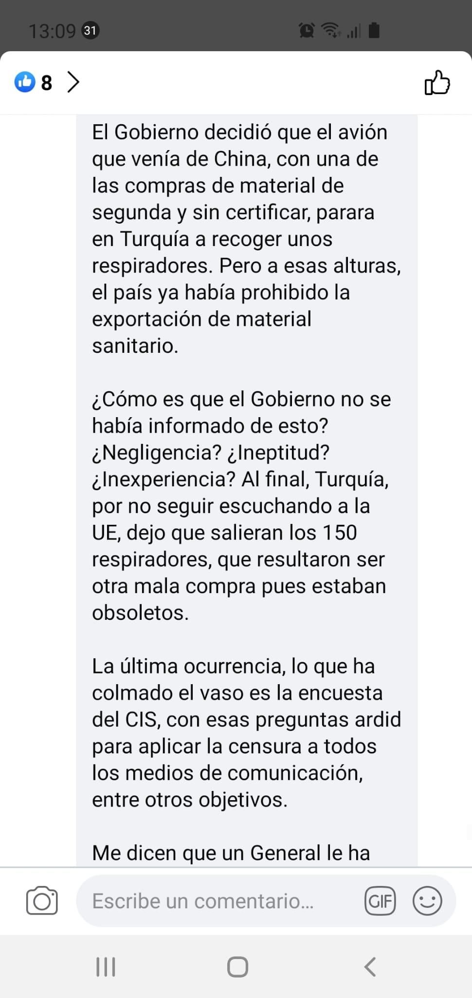 Concretamente compartía afirmaciones como las siguientes (literalmente): “Me dicen que un general le ha transmitido al jefe de las Fuerzas Armadas que hay un grupo de generales en absoluta disposición de cumplir órdenes en caso de que surjan entre los iluminados del Gobierno nuevas ideas que ataquen a orden público”.